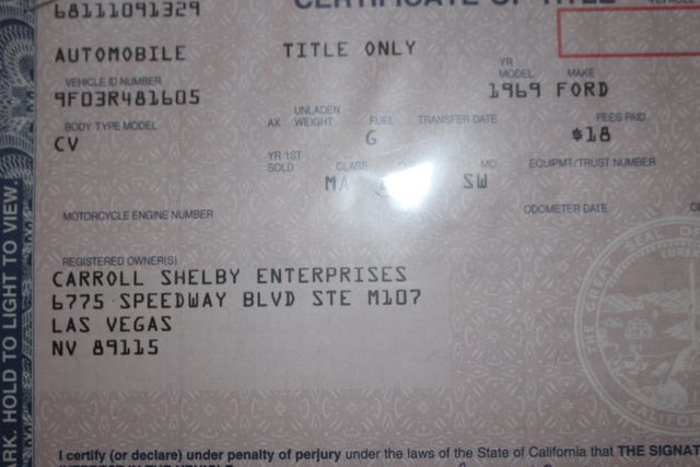 Purchased from Carroll Shelbys private collection. -1 of 245 GT 500 convertibles produced in 1969 -90,000 mile car cosmetically restored -Powered by the correct 428-4V CJ Ram Air engine -C6 Cruise-O-Matic transmission -3.00 Traction-Lok rear axle ratio This car was a home office special order #2615 -Built March 19th, 1969 -Finished in the color of Competition Red -Body and paint show a high quality fit and finish -Chrome and Stainless are in great condition Interior shows excellent -White clarion knit/Corinthian Vinyl Hi-back bucket seats All gauges show excellent cosmetically and work mechanically Additional options include: -Power top -Power steering -Power front disc brakes -Selectaire Air Conditioning -Tinted glass -Deluxe seat belts with warning light -Color keyed racing mirrors -Competition suspensionCall 636-734-3239 to further discuss this vehicle.