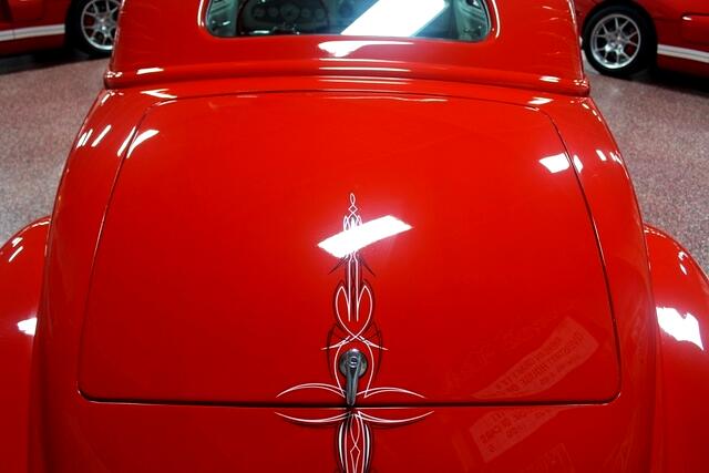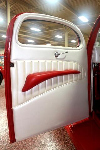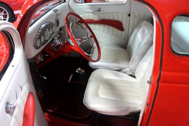 This car has great body lines and started as a stock all steel southern Ford coupe. It was then chopped 3 1/2 by Choppin Joe Limones and slanted B pillars and rounded door corners, filled cowl vent, smooth firewall with custom LED lights, frenched rear license plate and '59 Cadillac tail lights. Vibrant Torch Red paint with ghost flames and pin stripping. Powered by a Chevy 327cid V8 with electric fan and complete engine dress up and polished throughout with hoodless engine compartment and red LED lights on the motor. Ceramic coated ram's horn exhaust manifolds and dual Flowmaster mufflers, 5-speed manual transmission and Ford 8 rear end with 3.90 gears. Heidts IFS Mustang II front suspension, front disc brakes, Air Ride system on front and rear with Ridar Tri-Wheels wrapped in Cokar wide white wall tires. Pearl white interior with red accents, bucket seats, power windows, power brakes, '56 Ford steering column with '59 Bonneville steering wheel, stereo system and 6-disc changer. Featured on the cover of Rod & Custom magazine and in many others. Viva Las Vegas Best '30s Traditional Hot Rod, Goodguys West Coast Nationals Best '30s Traditional Hot Rod on Goodguys T-Shirt, mug and root beer bottles. It was also the poster/bidder badge car for the Barett-Jackson Reno Nevada auction. Ready for highway travels, cruising in town or to hit the car shows. Visit Overstreet House of Cars to shop our great deals. You can call 636-734-3239 to schedule your test drive today. Visit Overstreet House of Cars to shop our great deals. You can call 636-734-3239 to schedule your test drive today. Visit Overstreet House of Cars to shop our great deals. You can call 636-734-3239 to schedule your test drive today. Visit Overstreet House of Cars to shop our great deals. You can call 636-734-3239 to schedule your test drive today.Visit Overstreet House of Cars to shop our great deals. You can contact us or call 636-734-3239 to schedule your test drive today.